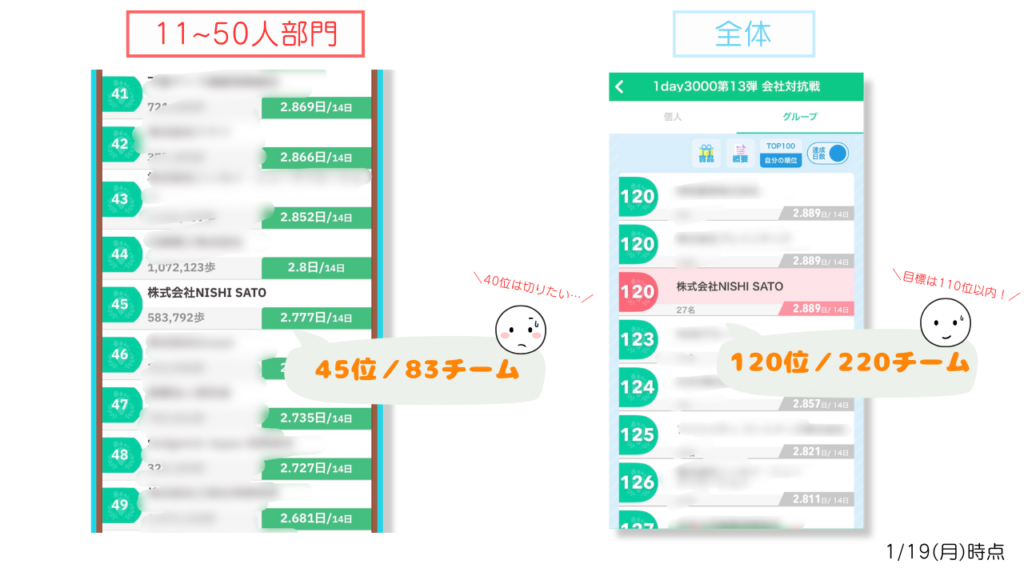全体の目標はまだまだ達成できそう!部門別の順位は少し厳しい戦いになっていますが、