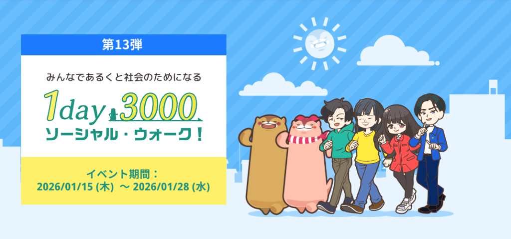 1day3000 ソーシャル・ウォーク!」への参加を通して、気軽に体を動かすきっかけになればと思います!