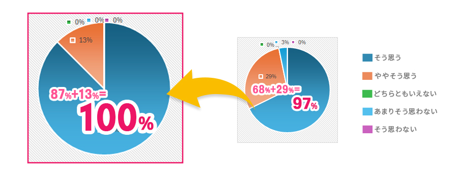 ⇒「そう思う」「ややそう思う」と回答した割合が 100%になりました。